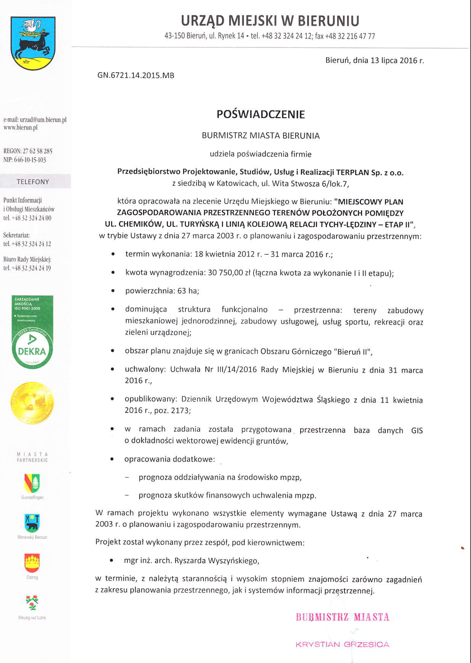PRZEDSIĘBIORSTWO PROJEKTOWANIA, STUDIÓW, USŁUG I REALIZACJI TERPLAN SPÓŁKA Z O.O.